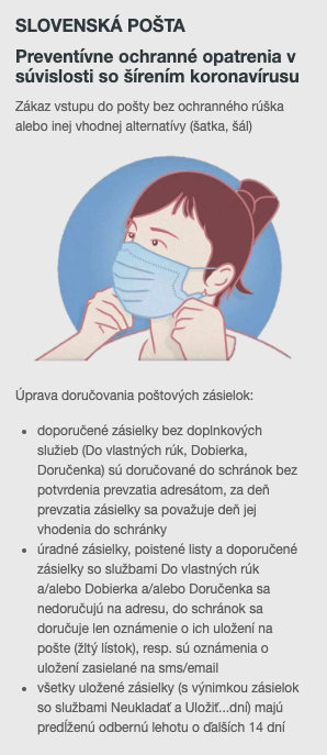 - Pred návštevou pošty si prosím prečítajte usmernenia: posta.sk: coronovirus