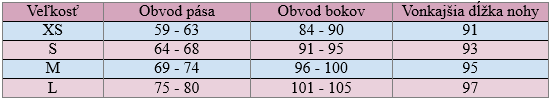 Veľkostná tabuľka (cm):