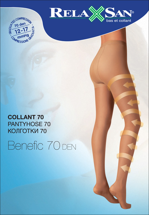 Pančuchové nohavice Basic 70 denové s odstupňovanou kompresiou od členku klesá smerom nahor 12 – 17 mmHg. Sú určené pre mierne potiaže s krvným obehom, pri náchylnosti ku kŕčovým žilám a pre tehotné ženy. Majú elastický pás, sú veľmi pohodlné.
