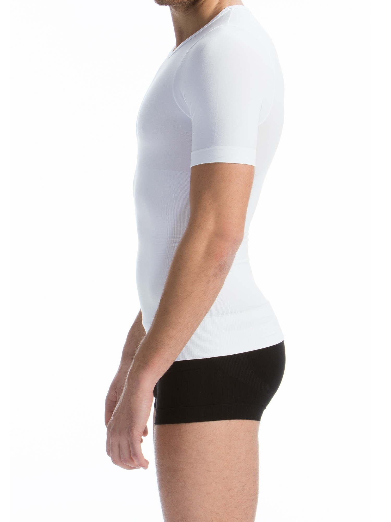 Nosenie pánskeho sťahovacieho trička prináša optické zoštíhlenie až o jednu alebo dve konfekčné veľkosti. Látka stiahne a zafixuje tuk, ktorý pri pohybe, v sede alebo v predklone nevytvára tukové riasy. Ponad lem nohavíc tuk neprevísa, nakoľko je stabilizovaný silnou tkaninou. Postava vďaka tomu pôsobí súmernejšie a pevnejšie.