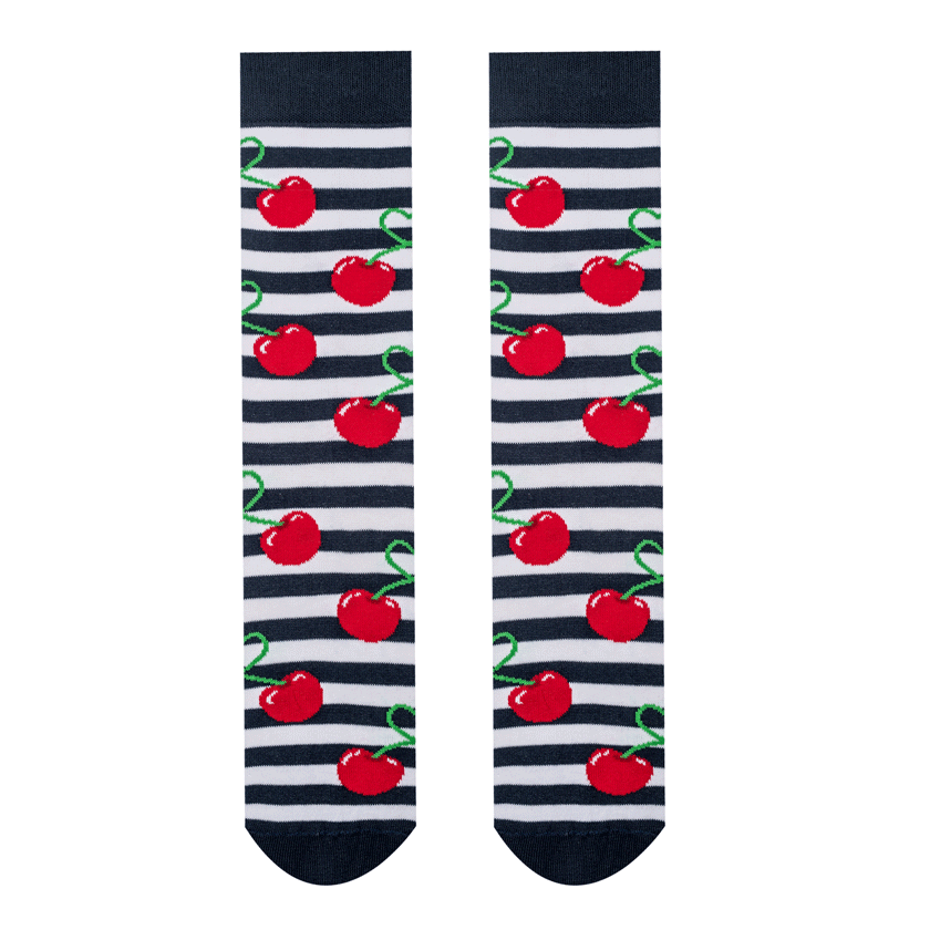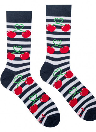 Motív sladučkých čerešní na pásikavom podklade rozveselia vaše nôžky.