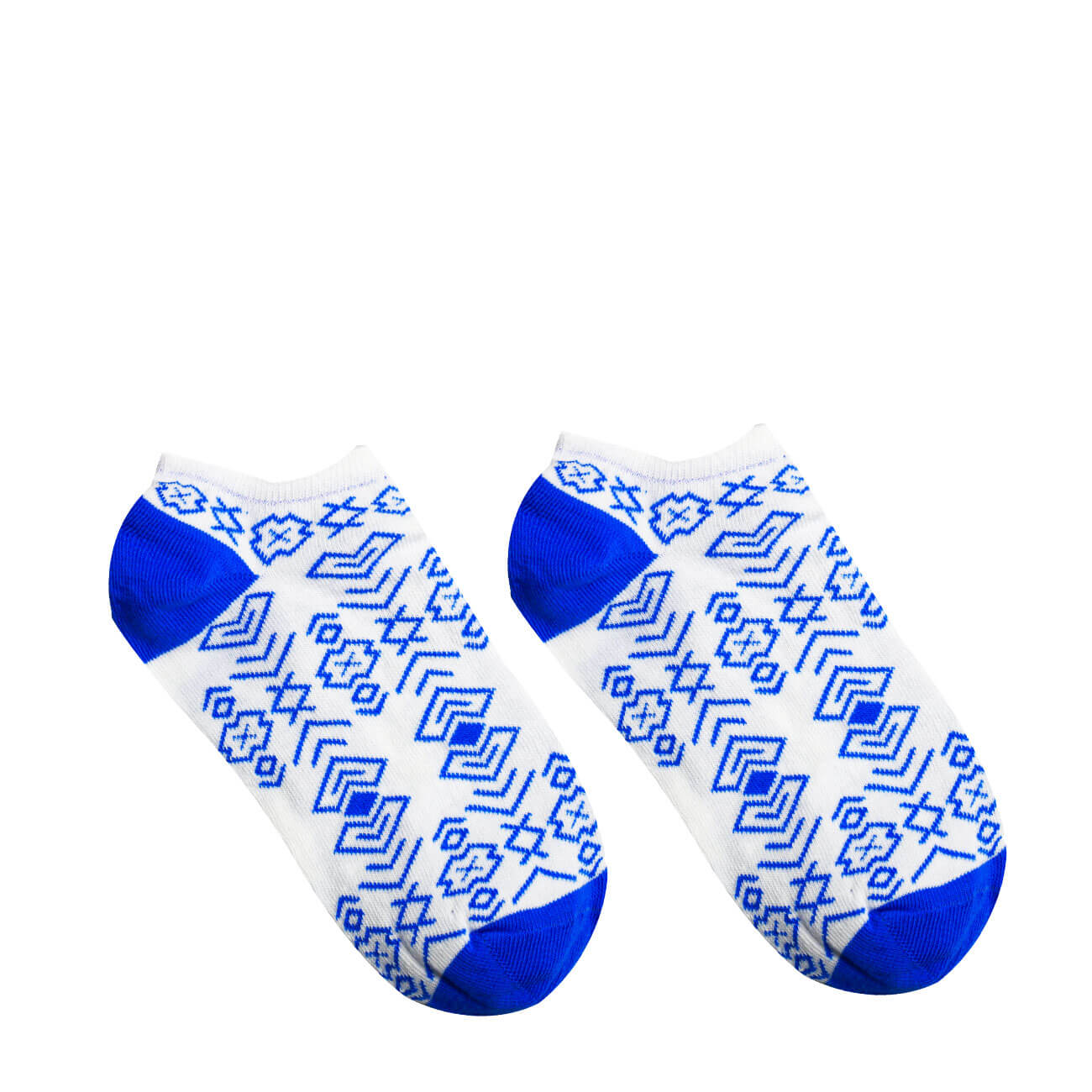 Nadčasová dizajnovka, ktorá nemá konkurenciu! V srdci Rajeckej kotliny sa vyníma svetoznáma dedinka Čičmany, ktorej unikátnu atmosféru odteraz môžete zažiť kedykoľvek. Tradičný slovenský vzor pôsobí v bielo-modrej kombinácii jemne a elegantne, vďaka čomu sa už na návšteve nemusíte hanbiť vyzuť sa. Krásne ponožky so slovenským vzorom siahajú po členky, takže vám nebudú prekážať ani v lete pri nosení botasiek. Kvalitná česaná bavlna je zárukou vysokej priedušnosti a komfortu počas celého dňa.