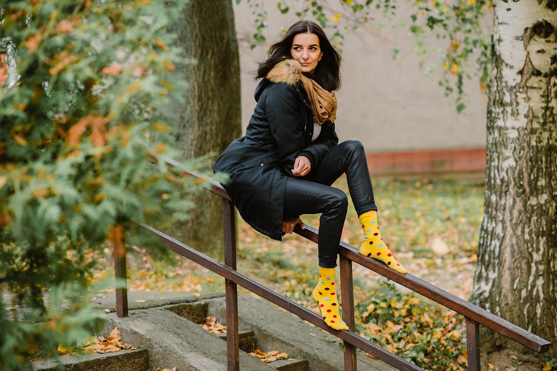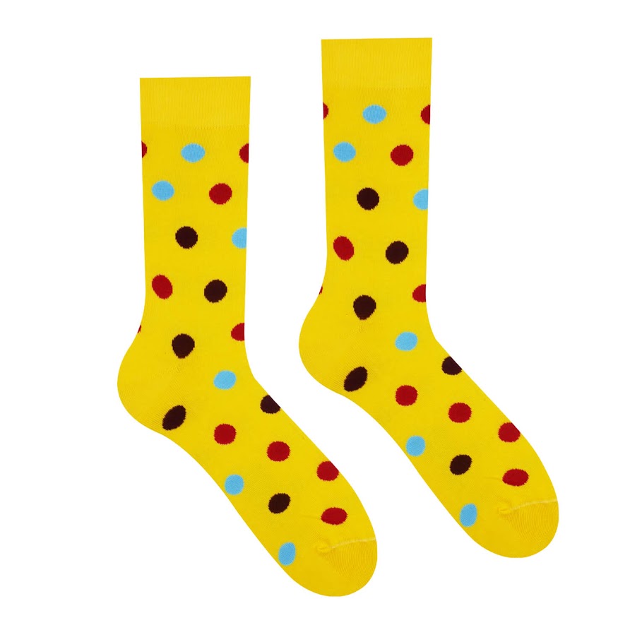 Hravé roztopašné bodkované ponožky sú dôkazom, že veselosť vôbec nemusí byť prešperkovaná farbami a vzormi. Farebné bodky v kombinácii so žltou farbou rozžiaria každý Váš outfit.