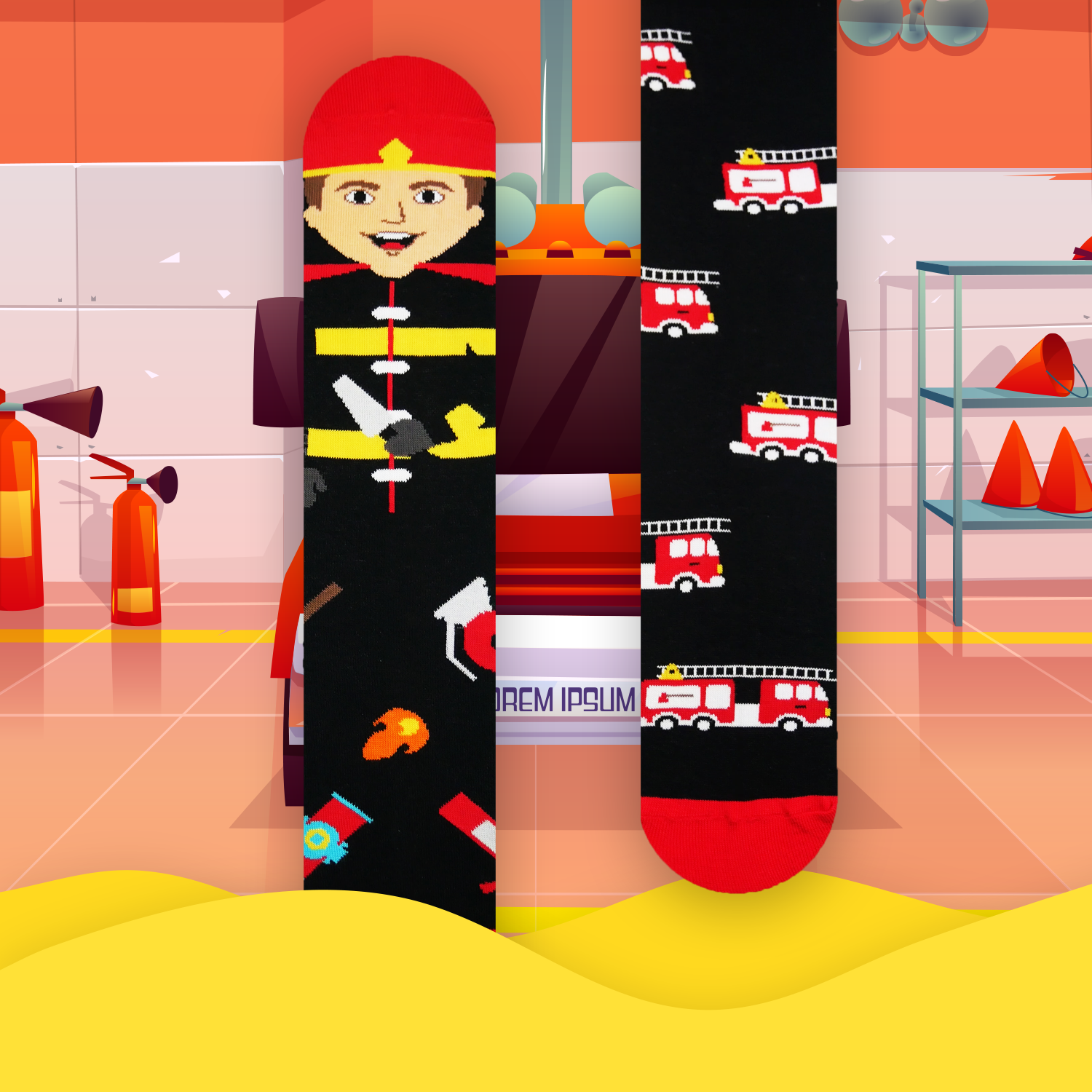 Veselé originálne ponožky pre tých, ktorí denne zachraňujú životy alebo dokážu poľahky uhasiť každý problém! Nech už je hasenie nešťastia vaším povolaním či nedobrovoľnou povinnosťou v súkromí, môžete si byť istí, že tieto veselé ponožky vždy nasmerujú vaše kroky do bezpečia!