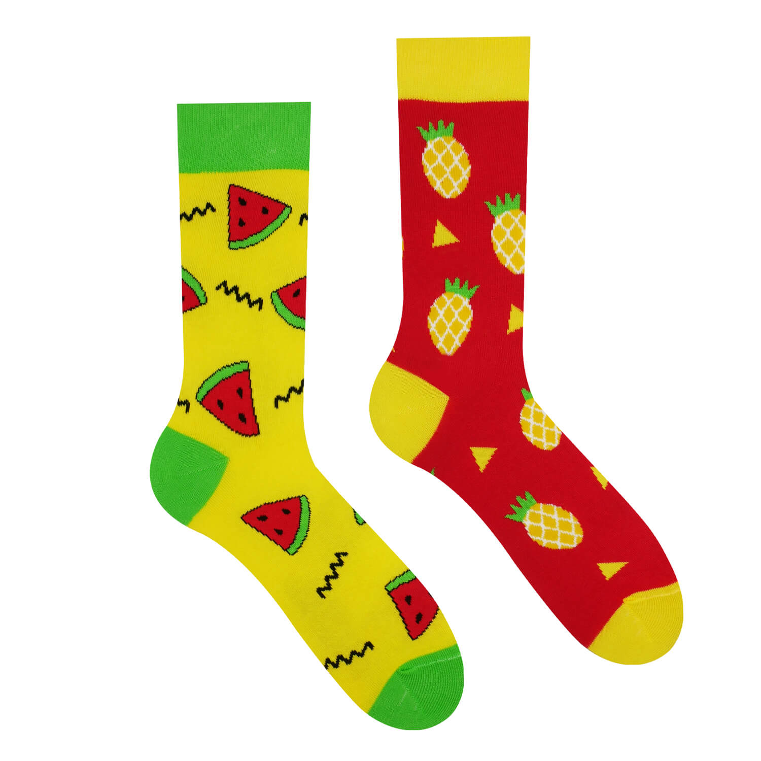 Ak sa radíte medzi nerozhodných ľudí, veselé ponožky vás nikdy pred sophinu voľbu nepostavia. Melón alebo ananás? Môžete mať oboje! Hoci sa ponožky na seba nepodobajú ako vajce vajcu, všetkým je jasné, že boli zrodené jedna pre druhú. Dávka pestrofarebnej ovocnej sviežosti dodá šťavu každej prechádzke, náročnej túre aj rutinnej ceste do práce!