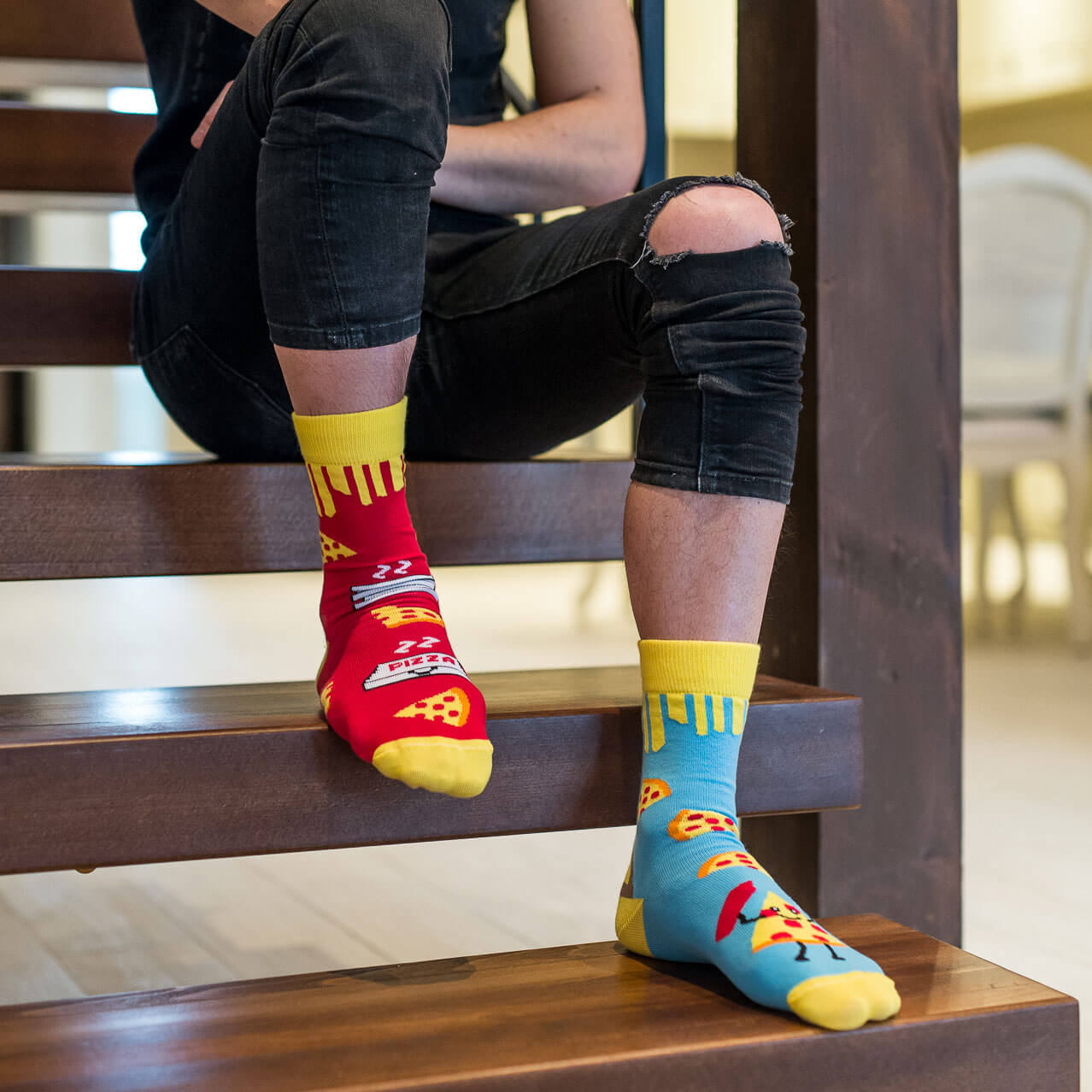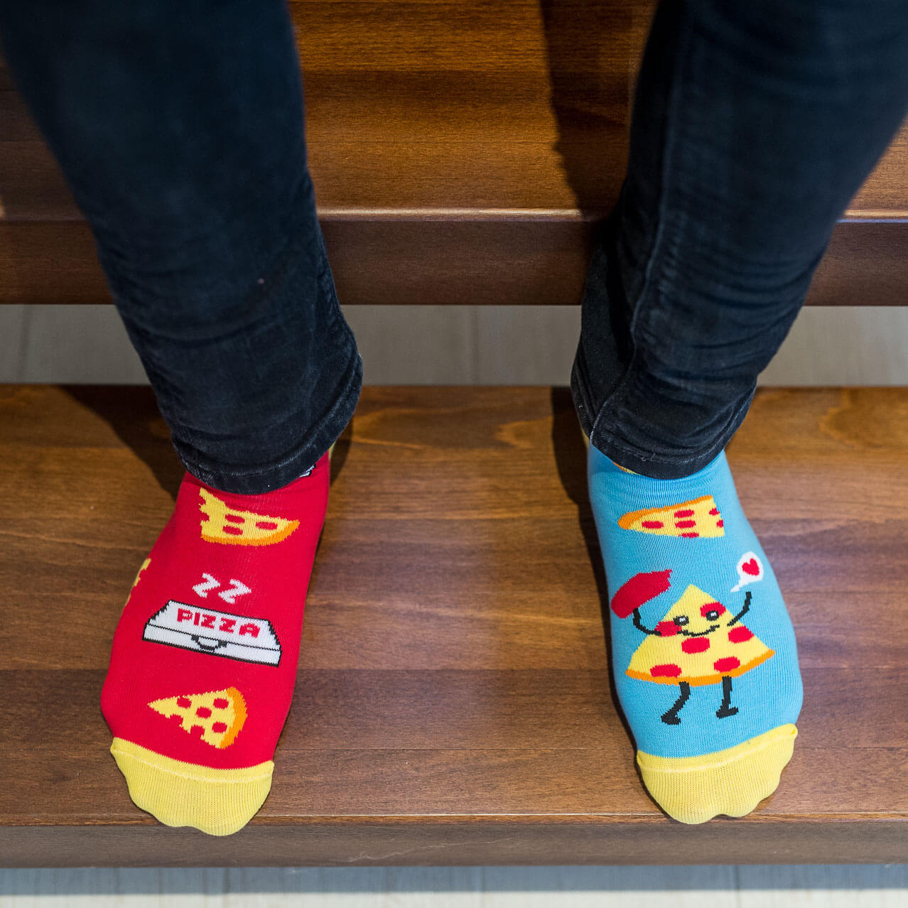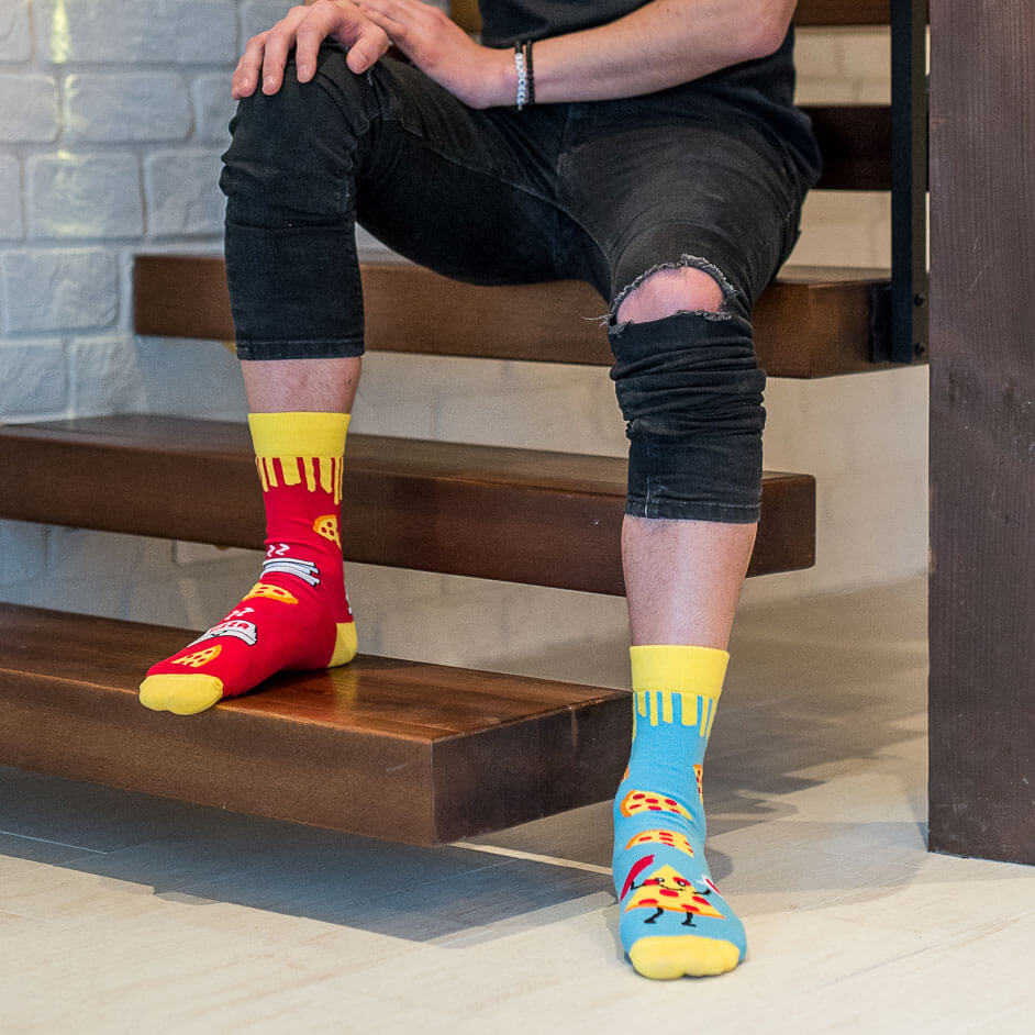 Veselé ponožky s motívom pizze sú pripravené prežiť s vami dlhý večer v pizzerii alebo filmový maratón v pohodlí domova v spoločnosti najobľúbenejšej talianskej pochúťky. Neboja sa kalórií, nebudú vás odhovárať od ďalšej porcie a nemajú predsudky ani voči tým, ktorí si objednajú hawai... Dokonalejšieho spoločníka pre chvíle, kedy robíte radosť svojim chuťovým bunkám, nikde inde nenájdete!