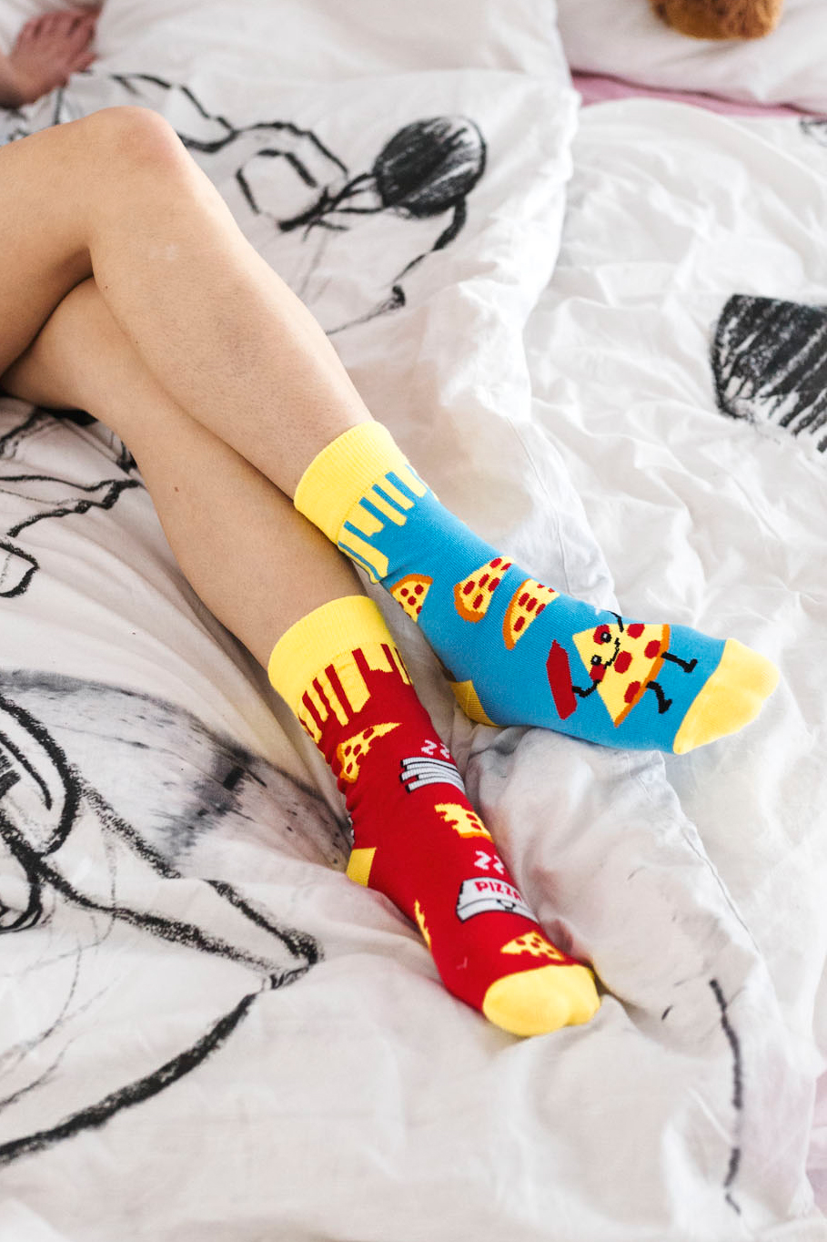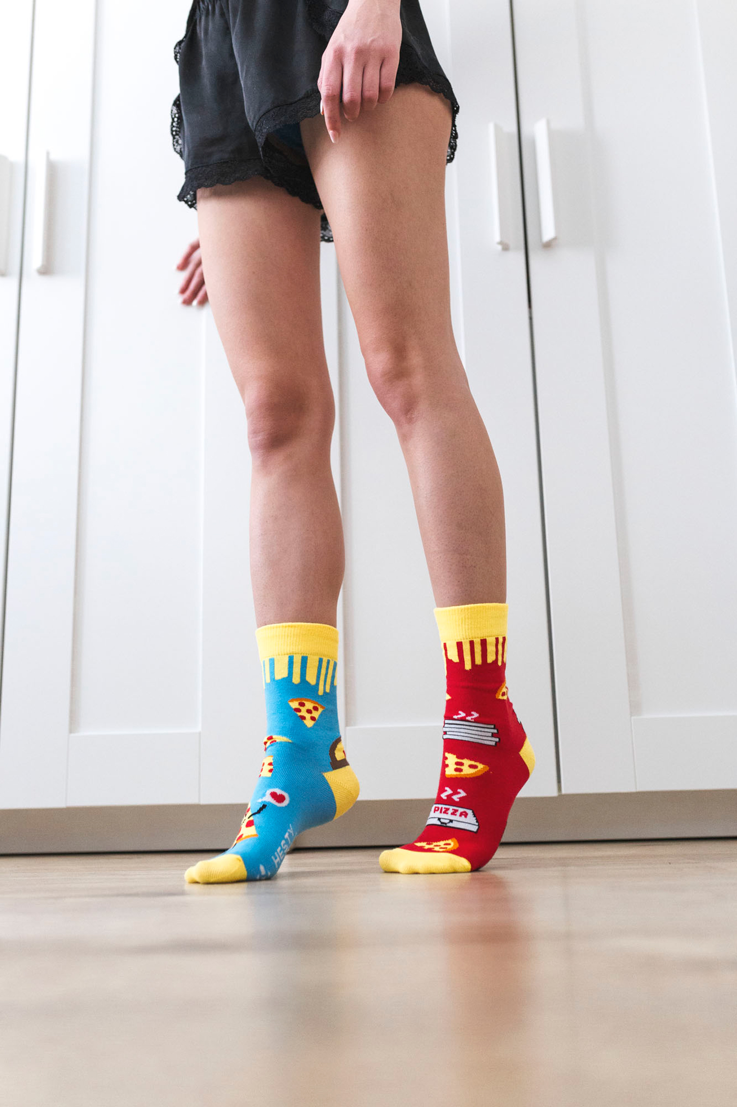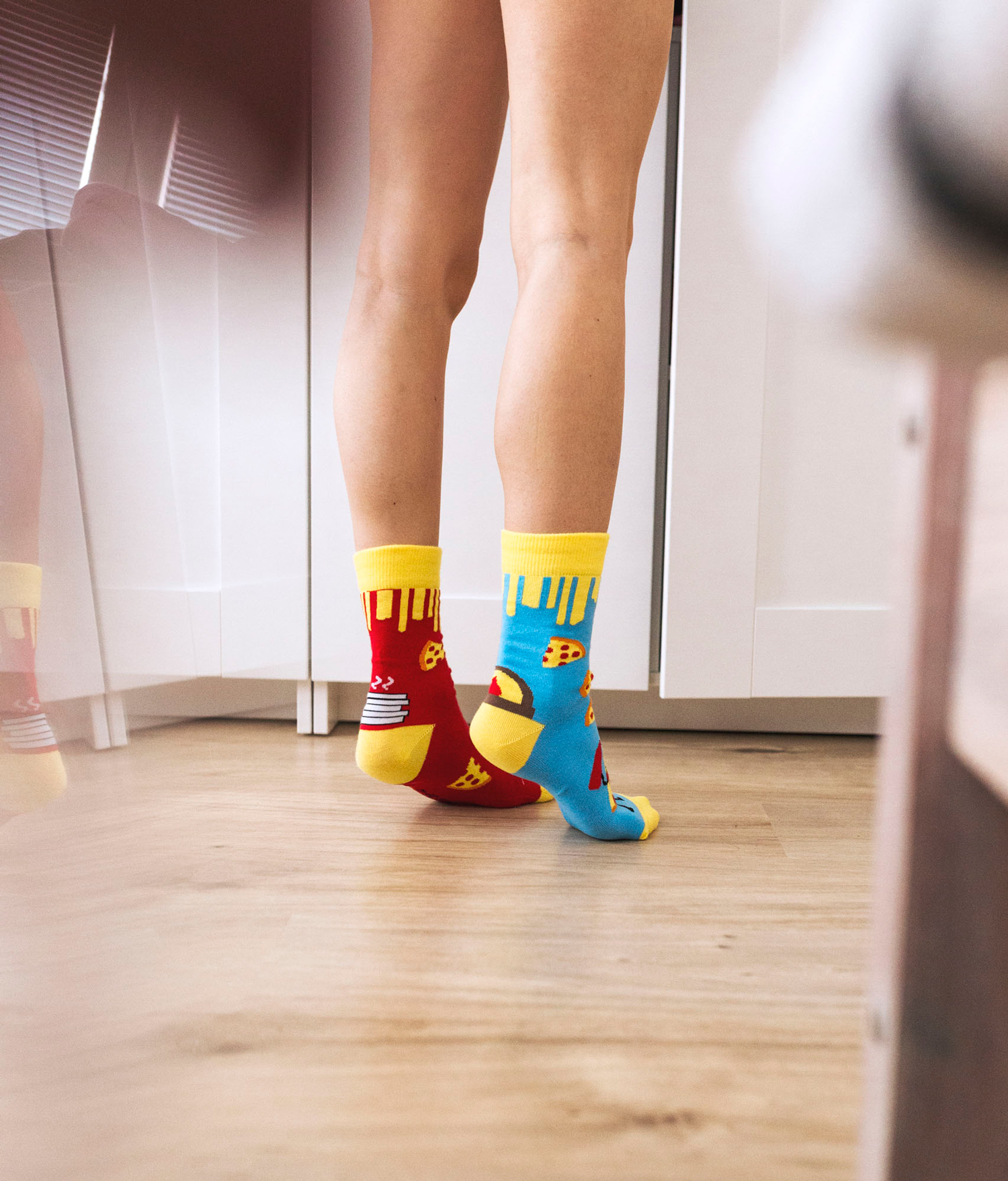 Veselé ponožky s motívom pizze sú pripravené prežiť s vami dlhý večer v pizzerii alebo filmový maratón v pohodlí domova v spoločnosti najobľúbenejšej talianskej pochúťky. Neboja sa kalórií, nebudú vás odhovárať od ďalšej porcie a nemajú predsudky ani voči tým, ktorí si objednajú hawai... Dokonalejšieho spoločníka pre chvíle, kedy robíte radosť svojim chuťovým bunkám, nikde inde nenájdete!