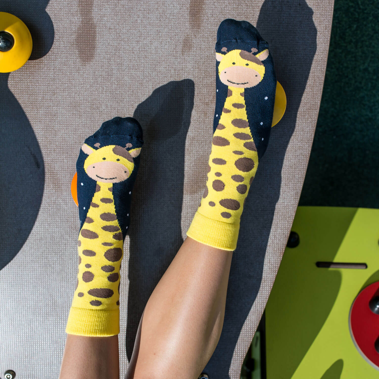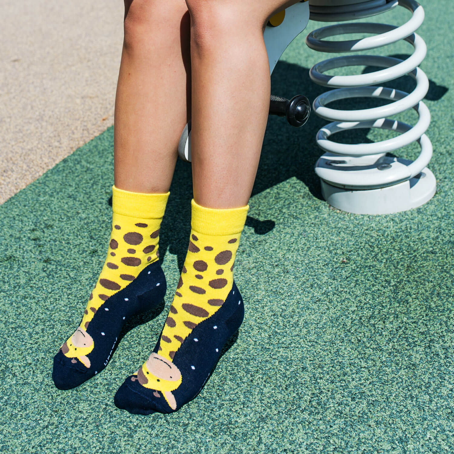 Mať dlhé nôžky ako žirafa, to je snom asi každého! No tí, ktorým príroda toto želanie nesplnila, môžu maž odteraz aspoň žirafy na nohách. Veď všetci predsa máme nohy až po zem, tak prečo sa od iných neodlíšiť týmto rozkošným žirafím motívom? So žirafami, ktoré budú striehnuť na každý váš krok, poľahky preskočíte všetky prekážky, ktoré vám život do vašej cesty položí.
